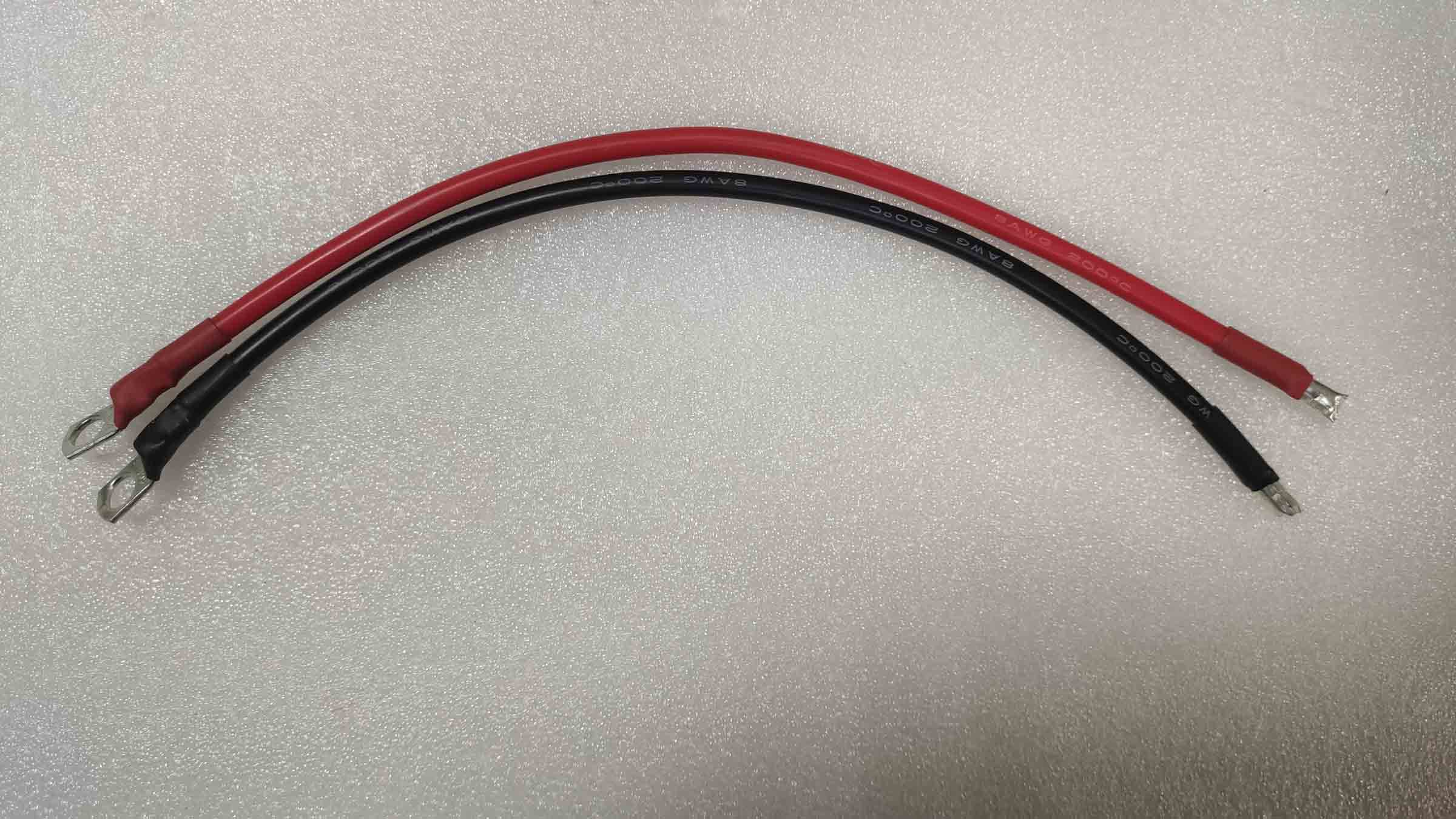 Silikonkabel - rot/schwarz | 10 mm²/8AWG | 300 mm | 1.Ende: Ringkabelschuh M8 2.Ende: Aderenhülse